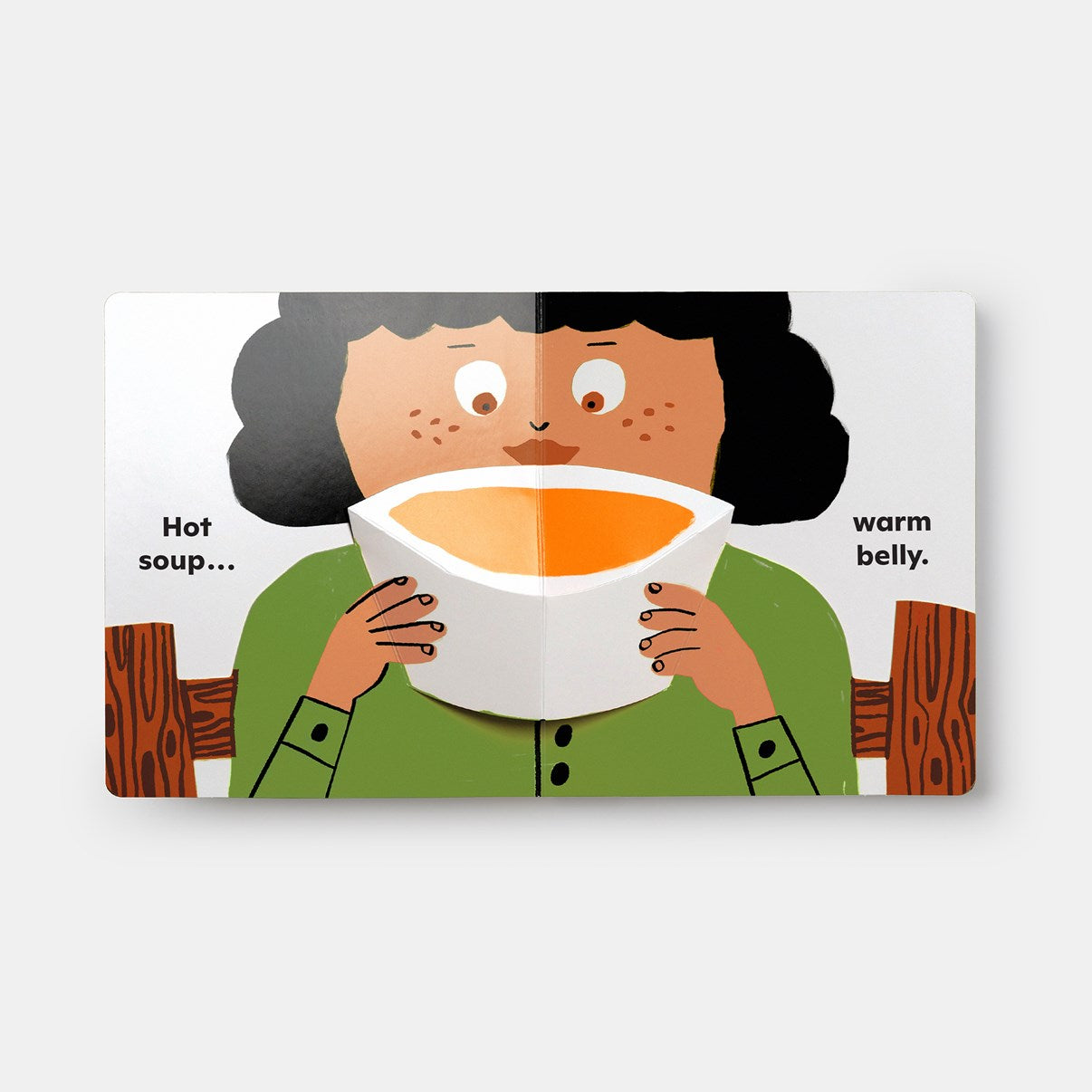From autumnal walks through woods filled with mushrooms, to tucking into a steaming bowl of pumpkin soup, sharing an umbrella on a rainy day to Halloween costumes, admiring the falling leaves to watching birds fly away for warmer weather, each spread captures the joy and beauty of the season in a way that's both familiar and fresh, clever and surprising.