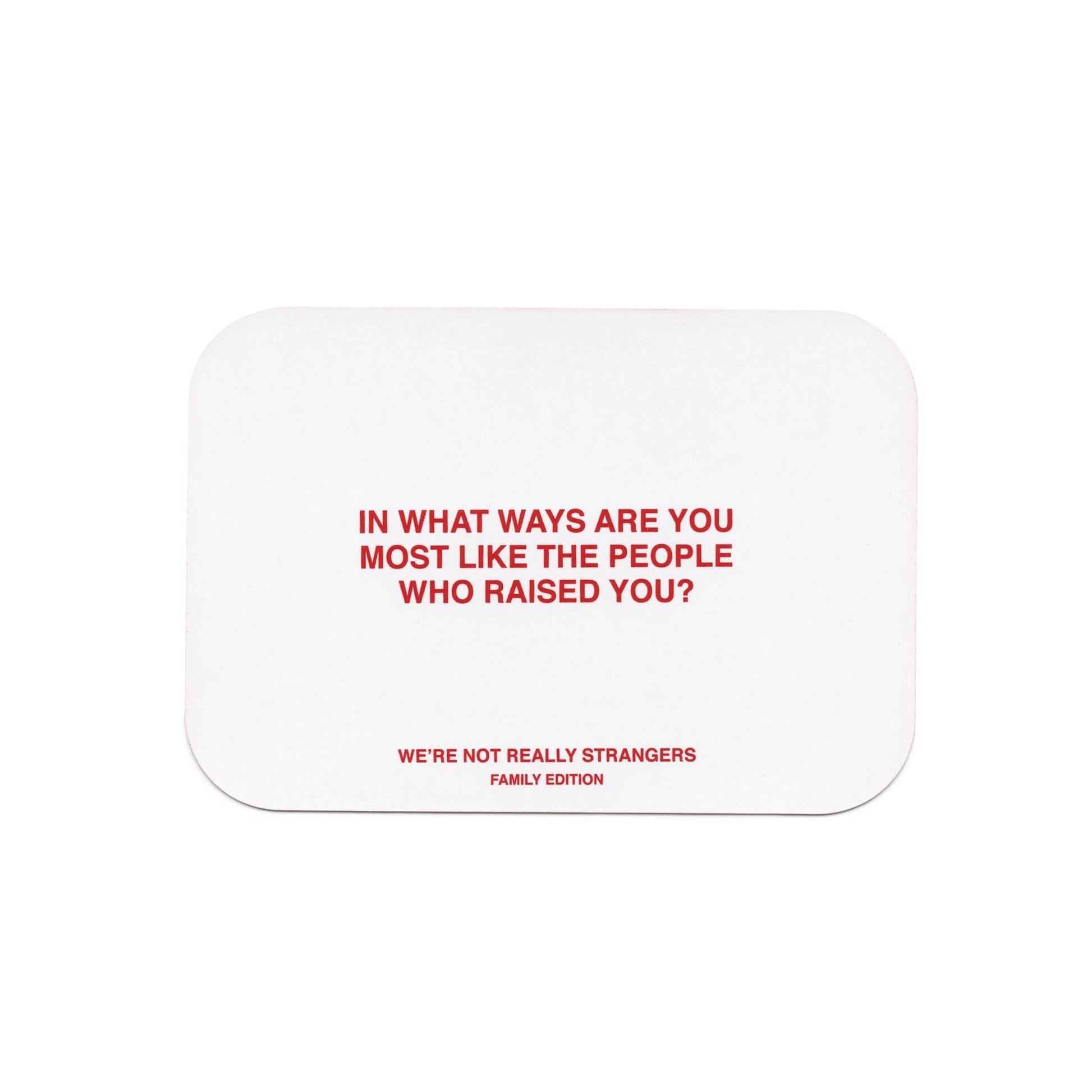 When was the last time you truly connected with your family, not just as relatives, but as human beings? Whether big or small, conventional or perfectly unique, our families play a role in who we are. With three carefully crafted levels of questions and wildcards, we made the Family Edition to help you deepen your connection with the people you’re closest to -- your biological family, the people who raised you, or the community you’ve created for yourself. Use these cards to get to know your family members as individuals and for them to get to know you.