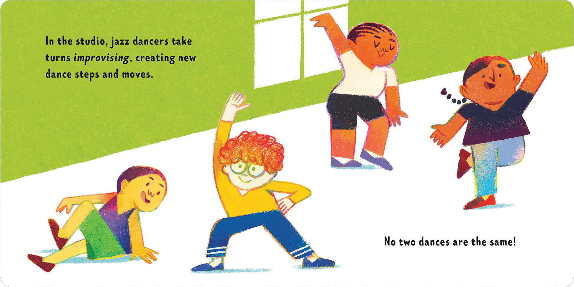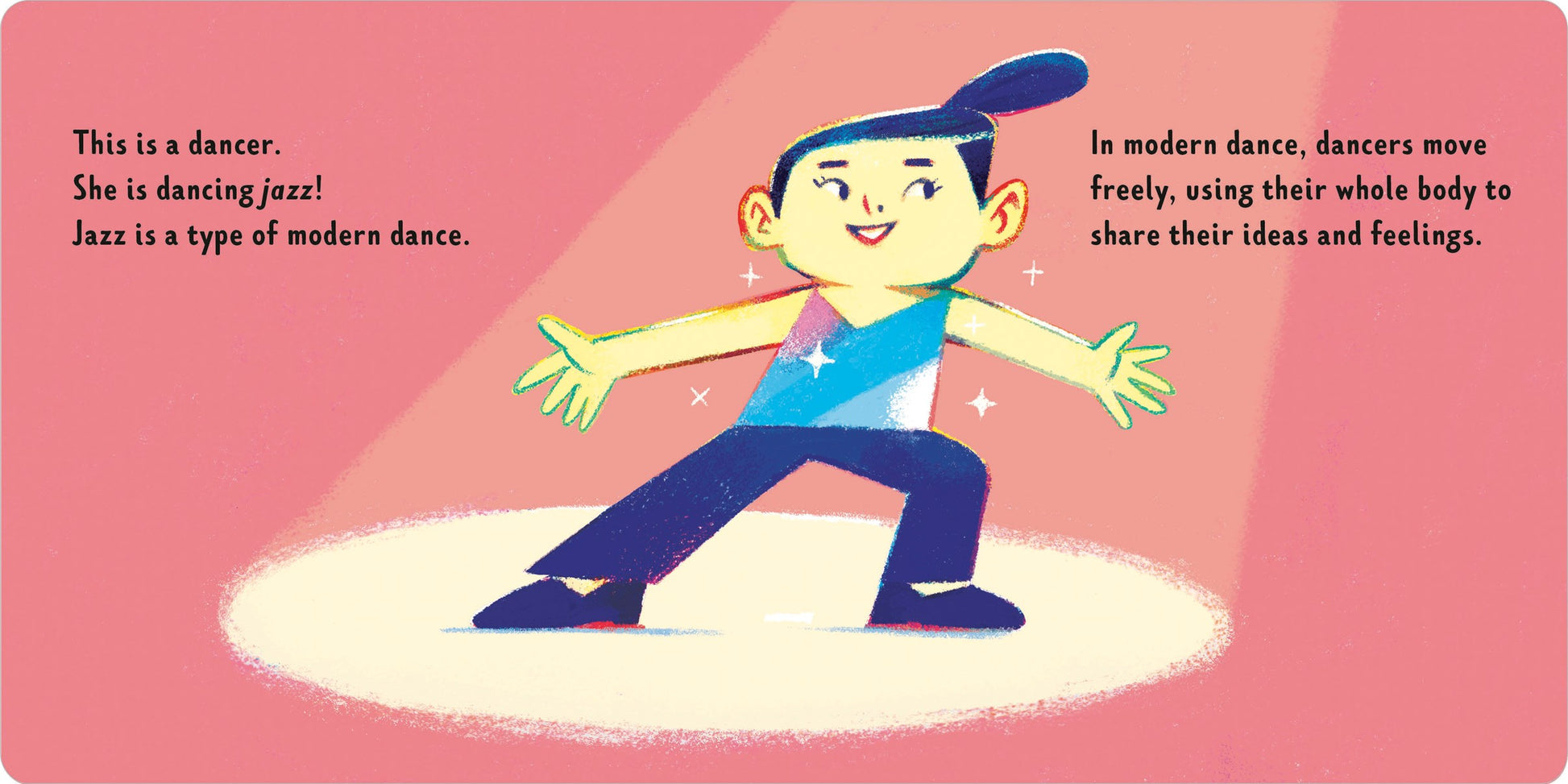 Can anyone be a modern dancer? Yes! From tap dance to swing, this board book celebrates the expressive, energetic world of jazz and modern dance. Young readers are introduced to a variety of styles from around the world and encouraged to dance freely, however and wherever they choose. Whether twirling alone or grooving with friends, kids will be inspired to move their bodies with joy, confidence, and creativity.